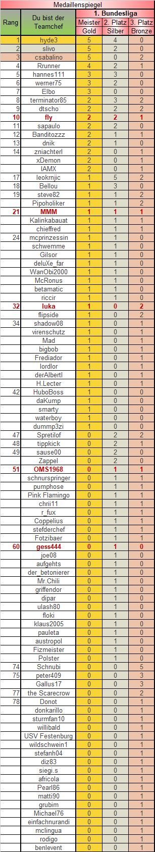 Medaillienbilanz 1. Bundesliga